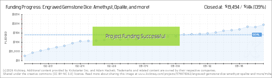 Beautiful gemstone dice, now engraved! Available in Opalite, Blue Sandstone, Tiger's Eye, Amethyst, & possibly more with stretch goals!
