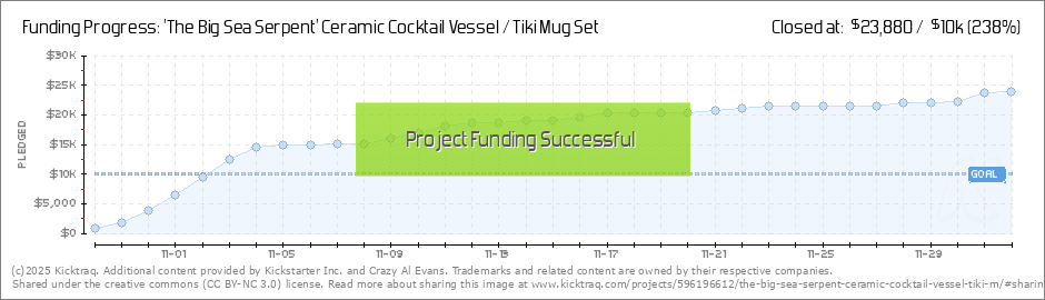 Thanks to the First Funders! I met my modest Goal! However, this modesty was just to insure fall/winter employment! And to make sure folks got a few Serpents at a good price point. So help employ artists and mug makers well into the New Year and... (Read More)