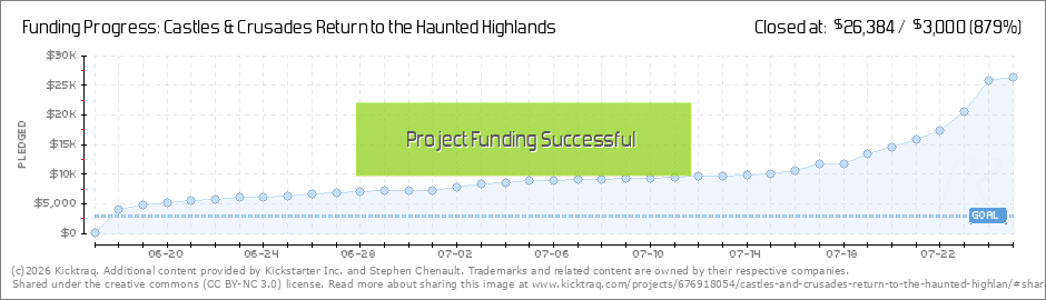 Greetings All! Return to the Haunted Highlands hit its $8000.00 stretch goal This means that the Players Guide to the Haunted Highlands will appear as a hardback book! Thank you all for making this happen Up next is the Castle Keepers Guide to the... (Read More)
