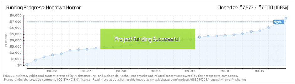 CAMPAIGN UPDATEWe're over 90% percent! We've got about 30 hours to go! This is going to be a nail-biter. Please keep sharing www.HogtownHorror.com with any horror-lovers in your life. Or other people's lives. Share share share, 'cos we're nearly... (Read More)