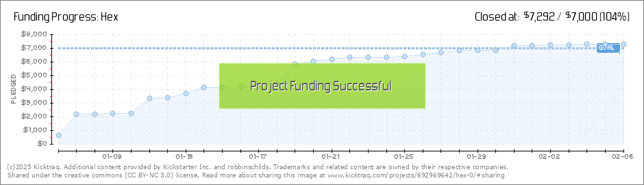 Dearest Hex Backers, Wow. Wow. Wow! We did it! YOU did it! We made our goal of raising $7000!!! A huge success! We are so grateful to each and every one of you for your generosity and support! We hope to see you all at Hex.... Don't forget to... (Read More)