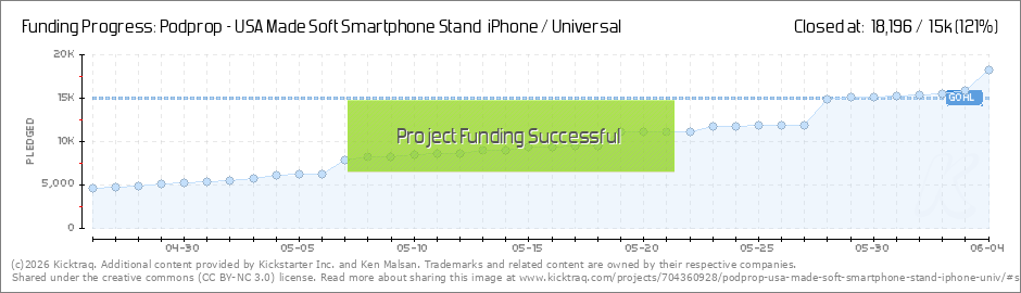 Hi everyone, 30% of goal and 40 days remaining. My focus has been getting the word out and communicating what's different about the Podprop. 60 second video included with this update. Recent highlights: Over 300 likes on the Facebook page (Podprops).... (Read More)