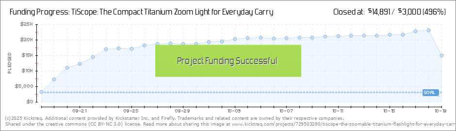 Help your backers reach your daily goals and help others see how you're doing. It's easy, with Kicktraq Mini.Here are a few quick snippits of code you can use to embed your personalized widget on your website, in your blog, and even on your favorite forum.
