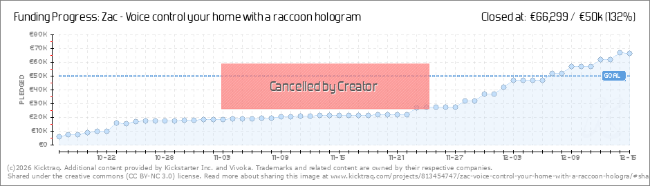 Dear all backers, Thank you for your support during this campaign, we managed to make 132 % of our objective and you have confirmed the interest in our product! We decided to suspend the campaign, it is mainly to change our way to distribute Zac,... (Read More)