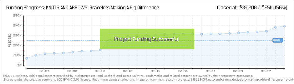Happy Tuesday to our Knots and Arrows Backers! We are so blessed with the support shown to Becca so far! We launched just 7 days ago and we have raised a WHOPPING $13,704 and are 54% FUNDED! Thank you so much for your support.....we are eternally... (Read More)