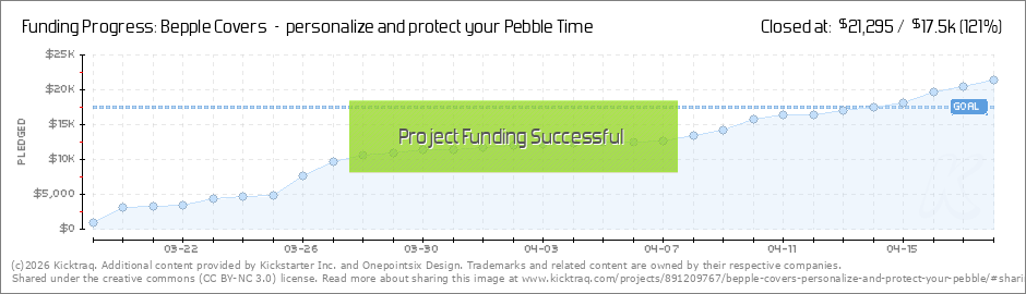 Wow! What a tremendous response. We're so excited that so many Pebble Time backers want our Bepple Covers on their new watches. We've had amazing growth so far, but this project still needs a lot more backers if we're all gonna fancy up our wrists... (Read More)