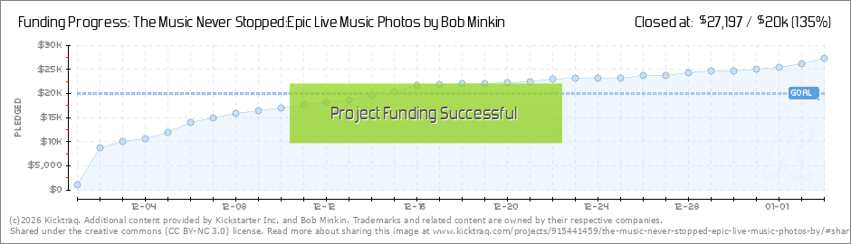 Let's get this done! Please support my Kickstarter campaign for my new book "The Music Never Stopped - Epic Live Music Photos by Bob Minkin" Marin County is bursting with live music every night... and I've been capturing and documenting it... (Read More)
