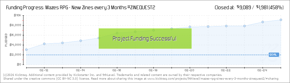 MAZES Last Day! Thank you all - we are sitting at 410% funded. ZineQuest2 Mazes has already outstripped the first campaign, and I am super excited for what this year is going to look like. We are really excited for the last day on this campaign,... (Read More)