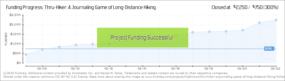 Funded! Hello, trail family! I am very excited to tell you that THRU-HIKER is now funded! Thanks to each and every one of you for your support and for believing in this project. THRU-HIKER is near and dear to my heart, a true combination of two of... (Read More)