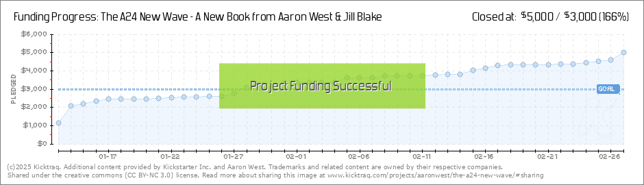 Hello, everyone. We are in week two and are 14% from meeting our goal. Again, we're not worried. We spent a lot of the last couple weeks programming our website with what we called "SirkenHeimer," which was a journey through films of Douglas Sirk,... (Read More)