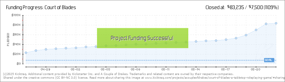 Retainers, We are pleased to announce that you have, as of this morning, ensured that we have the backing to make Court of Blades a gorgeous hardbound addition to your Forged in the Dark RPG library. If you've already gotten your hands on a copy of... (Read More)