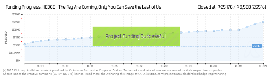 Beloved of the HEDGE, So closes the first week and we are at 150% of our funding goal. With three stretchgoals unlocked we have fully half again as many adversaries as the original book boasted, that's 9 Courts of the Fey poised to threaten the... (Read More)