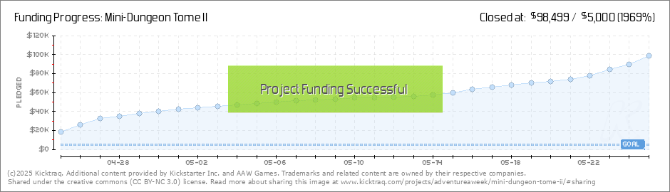 Ask a friend to back for $1 and we can unlock more Backer Goals! Mini-Dungeon Tome II Featured in Kickstarter Games Newsletter AAW Games is grateful to Kickstarter for choosing the Mini-Dungeon Tome II as a “Project We Love” and featuring our... (Read More)