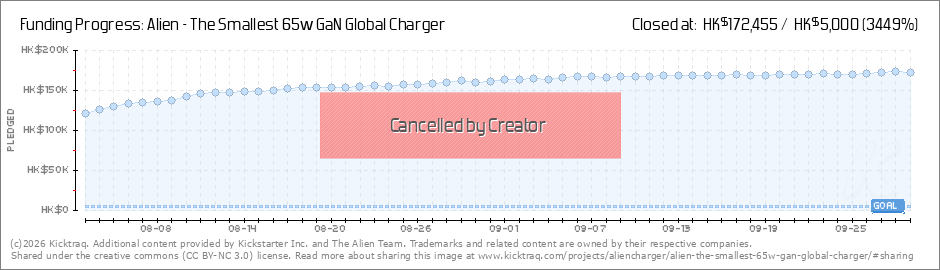 Dear Customers, Thanks so much for your support on Alien charger. We are so grateful that you love the product. Unfortunately, we're sorry to tell you that we'll cancel the Kickstarter campaign as we have come up with a new idea and want to make... (Read More)