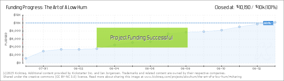 Help your backers reach your daily goals and help others see how you're doing. It's easy, with Kicktraq Mini.Here are a few quick snippits of code you can use to embed your personalized widget on your website, in your blog, and even on your favorite forum.