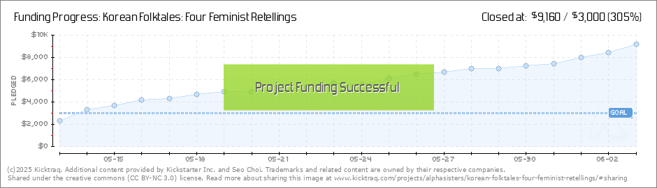 Hi everyone! I have added a new reward option that provides you a digital format of each of the books: Korean Folktales: Four Feminist Retellings Budoji: A Tale of the Divine City of Ancient Korea with an Overview of Korean Shamanism Return: Korea's... (Read More)