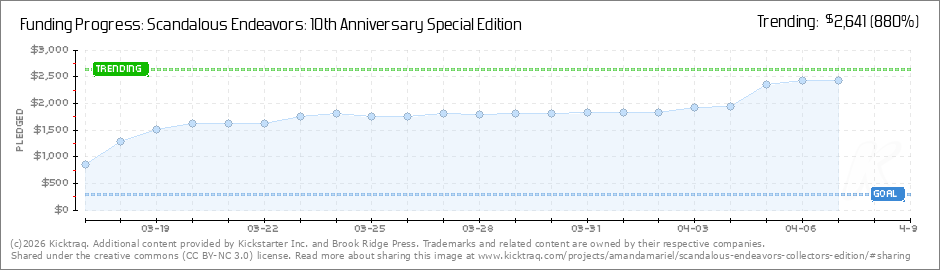 Hi everyoneā I have the happiest update: we funded in under 10 minutes. š¤ÆšIām still a little stunnedāin the best way. Thank you for showing up so quickly and making Scandalous Endeavors ā 10th Anniversary Collectorās Edition a... (Read More)