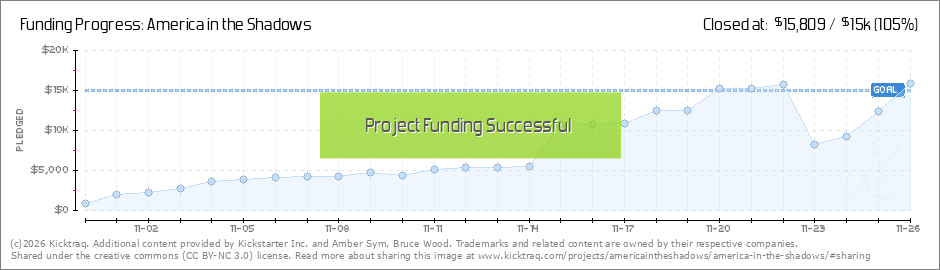 With a few days remaining we made it to $15,000! Yay! I'm so excited <3 This project is going to be amazing. But I'm not stopping yet! My real goal is $25,000. Every additional dollar pledged increases the chances that America in the... (Read More)