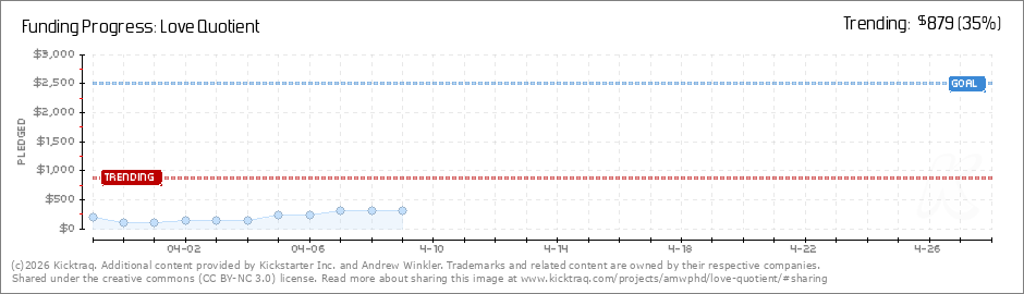 Help your backers reach your daily goals and help others see how you're doing. It's easy, with Kicktraq Mini.Here are a few quick snippits of code you can use to embed your personalized widget on your website, in your blog, and even on your favorite forum.
