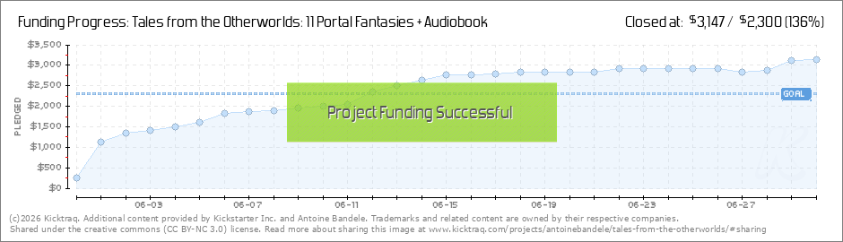 Thanks to each and every one of our backers! It took us a little over a week to get 100% funded! This means we are able to produce an audiobook for our anthology. In fact, we can start auditions for it as early as tomorrow now that we know we... (Read More)