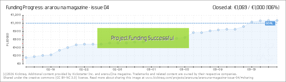 Help your backers reach your daily goals and help others see how you're doing. It's easy, with Kicktraq Mini.Here are a few quick snippits of code you can use to embed your personalized widget on your website, in your blog, and even on your favorite forum.