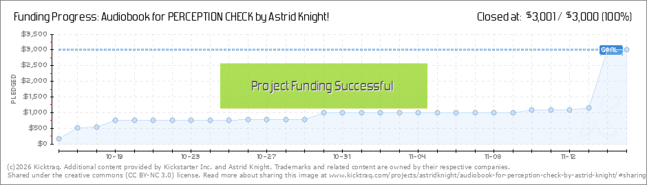 Hey all! Thank you all SO MUCH for pledging your support for the audiobook! We've raised nearly $800 so far, which makes it a quarter of the way to the goal! Holy cow! I could have never imagined so much support when starting this, so thank you so... (Read More)