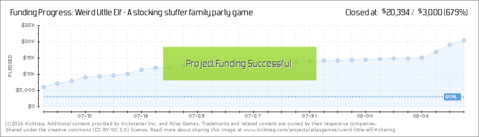 Thank you for backing Weird Little Elf. Now that we've gotten the funding out of the way, we can announce our next stretch goals. The campaign page has been updated to reflect these new goals. Stretch Goals $4,000 More Physical Santa Cards (35+15=50... (Read More)