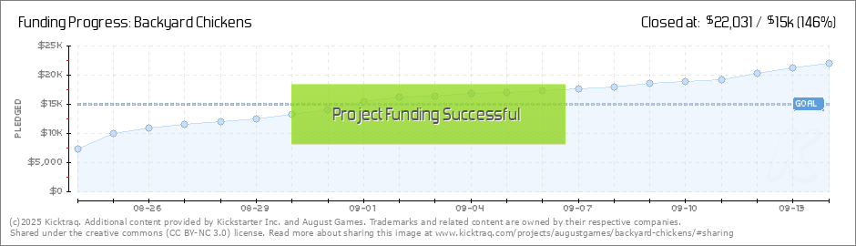 Hello all! Thank you so much for your support. We have a week left and hope to get a big push at the end. While you wait, Don and Adrian were kind enough to share their designer diary for Backyard Chickens. Enjoy! Designer Diary Hi all, Don... (Read More)