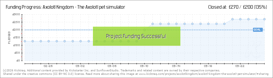 So with us hitting the funding goal, I have a small gift for all backers. Every backer will receive a steam key for the OST for Axolotl Kingdom. Also, we will be launching to both steam and the epic store! (Read More)