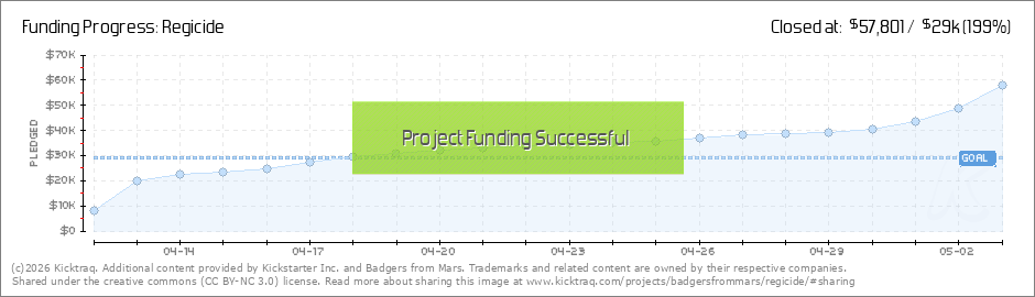 Regicide is funded! We want to give a huge thanks to all our backers for helping bring this project to life. To have hit our goal within the first week is great - and there are still two weeks to go! A special thanks goes out to Dennis, one of our... (Read More)