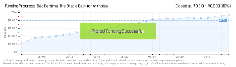 I wanted to send a quick update thanking everyone for the support. We are just shy 50% :) I'm still pushing cards on people everyday so we can meet our goal. I hope we can all enjoy some bad kardma soon haha. (Read More)