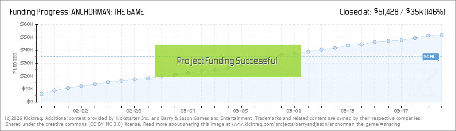 And now that we're atop this mountain, we are going to loudly proclaim our love for you. WE LOVE YOU! Thank you all for helping us hit our goal of $35,000! In true Anchorman fashion, the backer who got us over the edge goes simply by Dick, and... (Read More)