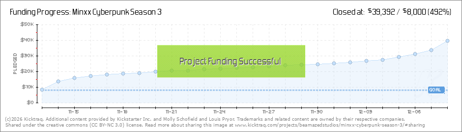 Yes! We have passes $16,000 (THANK YOU!) so as promised, let's get to the First Stretch Goal - The Minxx Cyberpunk Kickstarter Exclusive Trading Card (UNLOCKED) Next up at 500 backers the Minxx Die Cut Sticker (Read More)