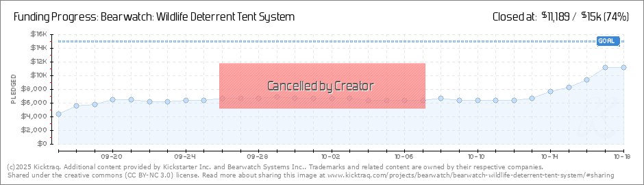 We want to share with you this video from some field testing. A curious bear with some cubs approaches the tent with Bearwatch then is deterred by our system. You'll need an HTML5 capable browser to see this content. Play Replay with sound Play with... (Read More)