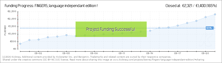 We've reached 50% financing, that's great news! Another half and we'll get there, I'm relying on you to tell your loved ones about it. We have to reach the target to unlock exclusivities ! Please spread the word ! Fingers is now on BGG (Read More)