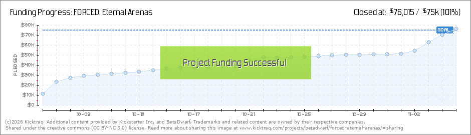 50%! We are super happy to have reached the 50% mark! Things are definitely slowing down, so we still need all the help we can get to reach the goal, but we are feeling optimistic! Tell a friend, poke a pal! Anything helps :) FORCED is out on Xbox 1... (Read More)