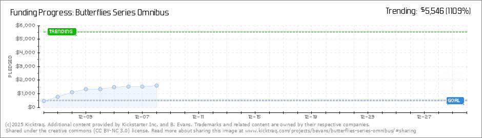 Thank you so much everyone who’s made a pledge so far! We’ve reached the first stretch goal and I’ve let my artist know that I e are going to be doing another art piece! (Read More)