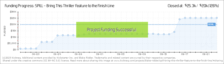 We did it.Thanks to you, SPILL is now officially fully funded. This means the movie you believed in can be completed with the edit, sound, and colour it deserves. I can’t thank you enough for being part of this moment, every pledge, every share,... (Read More)
