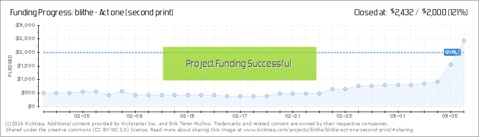 WOO!! this is awesome!! And everyone getting physical copies will get a little poster with their books, as the first stretch goal has been reached! Thank you all for your amazing support! Still a few hours left to go, maybe we hit the next stretch... (Read More)