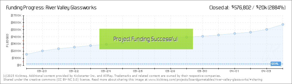 No More Stretch Goals!We're making a change. It's been a long time since we've tried out stretch goals in a campaign. For River Valley Glassworks, we were hoping that they would be a fun way to track progress and keep backers excited. But, it's... (Read More)