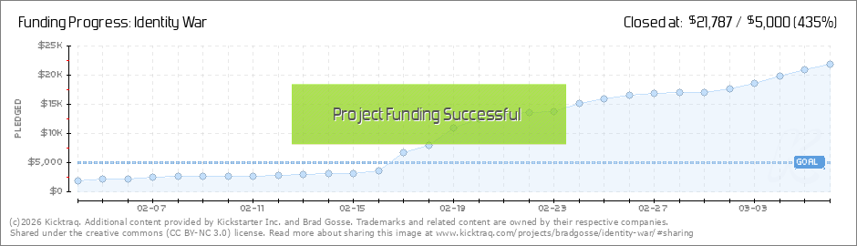 Our Kickstarter campaign has been fully funded. Thanks to you. That means we are successful in this campaign, and we will be delivering card decks early this summer. Tell your friends it's time to back identity war. The game where you get to play... (Read More)