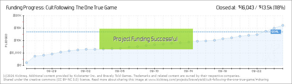 In the words of the Prophets Bon Jovi, We're Half Way There! Cult Following is 50% funded. We've made great progress, but we still need your support. If we're going to reach our goal, we need each of you to share this game with your friends and... (Read More)