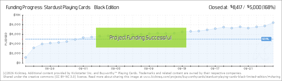 Hello all, First day into the campaign and we're looking at 60% funding and going strong - Thanks so much backers and everyone who's been talking about and promoting this project. Stardust Playing Cards (Prototype cards pictured) We're already at... (Read More)