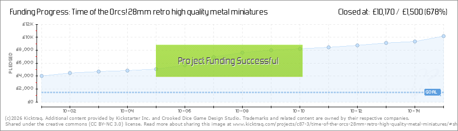 The Time of the Orcs is coming to an end! Our two week campaign is nearly over - but you still have four hours to jump on board! We are close to unlocking another free stretch goal - the industrious Sweep McKleen - so may break through the 10k... (Read More)