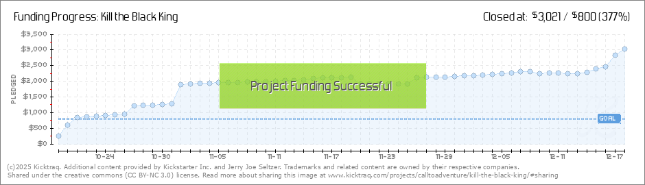 Help your backers reach your daily goals and help others see how you're doing. It's easy, with Kicktraq Mini.Here are a few quick snippits of code you can use to embed your personalized widget on your website, in your blog, and even on your favorite forum.