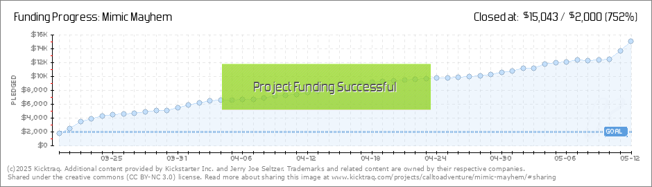 Help your backers reach your daily goals and help others see how you're doing. It's easy, with Kicktraq Mini.Here are a few quick snippits of code you can use to embed your personalized widget on your website, in your blog, and even on your favorite forum.