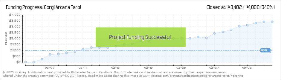 Thanks to everyone who has backed and followed the project! We are just short of our goal, however we are confident that we will surpass it! In addition, four new cards have been posted on the story page... Ace, Two, Three, and Four of cups! Thanks... (Read More)