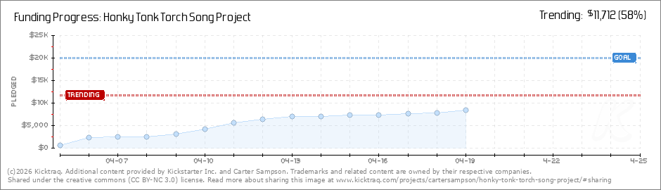 Help your backers reach your daily goals and help others see how you're doing. It's easy, with Kicktraq Mini.Here are a few quick snippits of code you can use to embed your personalized widget on your website, in your blog, and even on your favorite forum.