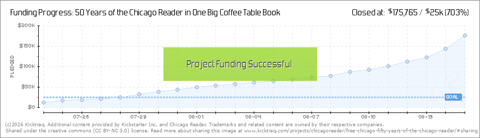 Thanks to everyone who pitched in out of the gate, we’ve already blown past our initial funding goal of $25,000. That means Free Chicago: 50 Years of the Reader is a go—and this book is going to be a reality. When we launched this project, we... (Read More)