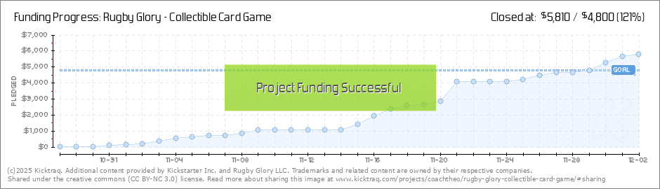 Thank you all for your support, we are looking forward to taking this journey with everyone. And our success will be thanks to you! Look for daily RUGBY GLORY updates to feature artwork, game progress reports, new rewards and stretch goal... (Read More)